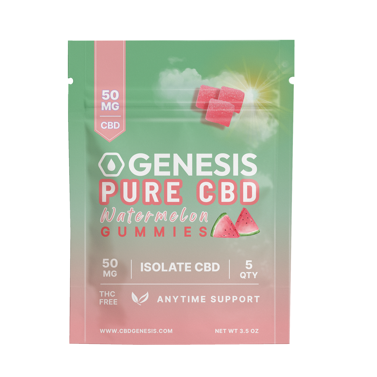 Genesis Pure CBD Gummies are your go-to for clean, effective relief—without a trace of THC. Each juicy watermelon gummy is infused with 50mg of premium CBD isolate, delivering consistent, flavor-forward calm in every bite. With a soft, chewy texture, these gummies are a daily wellness essential.